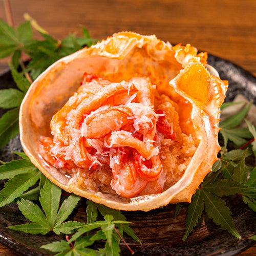 蒸し上げた国産紅ずわいがにのほぐし身を甲羅にたっぷりと詰め込んだこだわりの一品です。