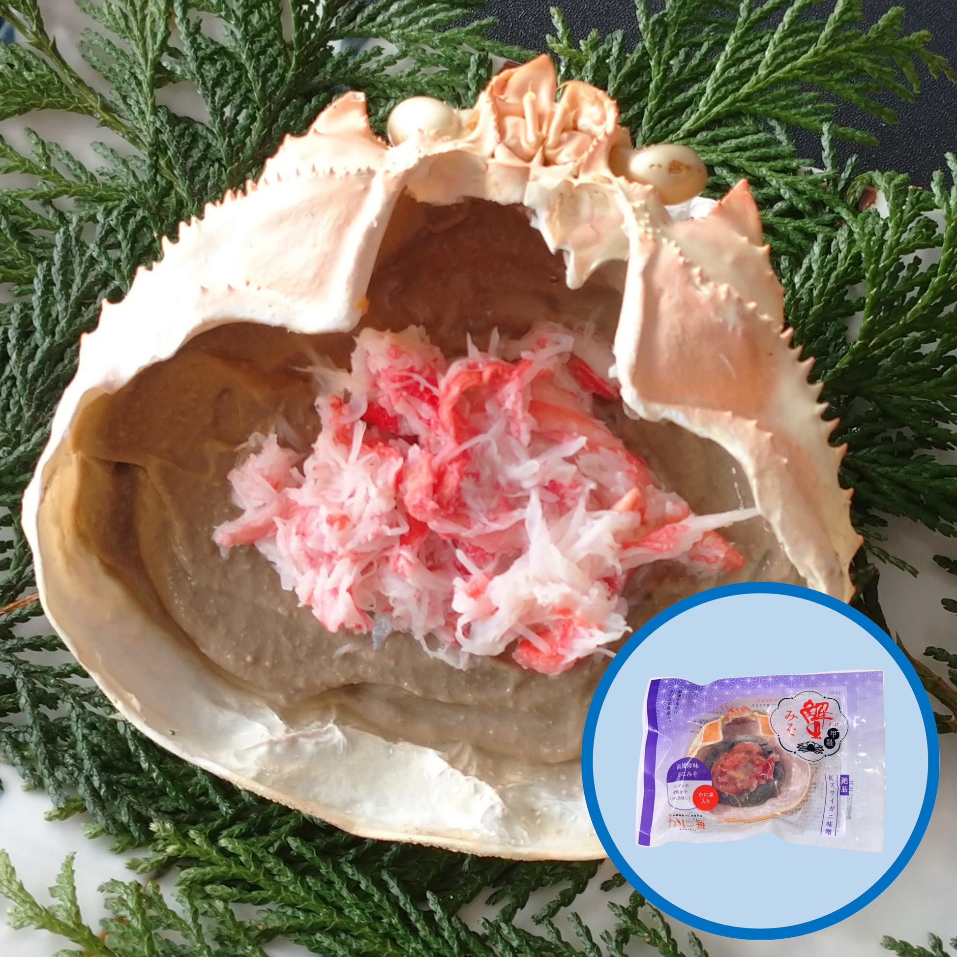 当社大人気のかに味噌と紅ずわいがにの脚のほぐし身を甲羅に盛り付けた一品です。