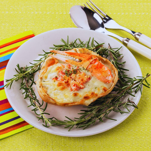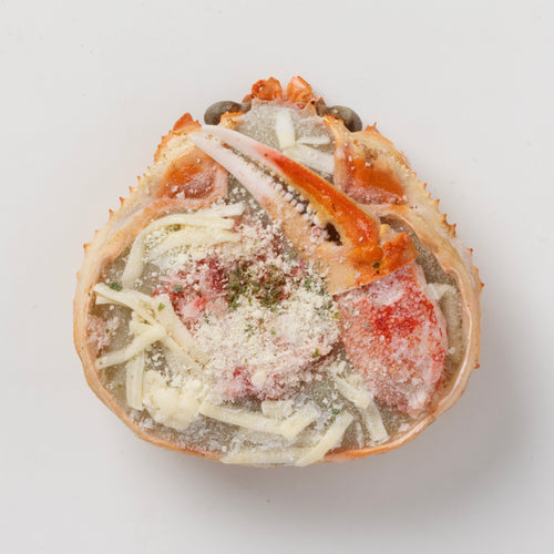かに味噌風味のご飯にベシャメルソースを加え、かにのほぐし身、紅ずわいの脚肉と