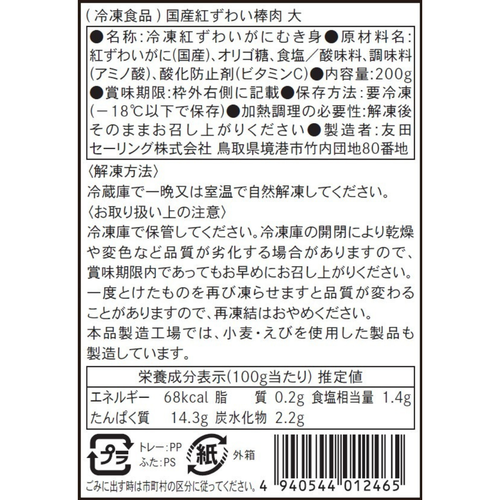 【かに舞】かに舞プレミアム 国産紅ずわい 棒肉 200g