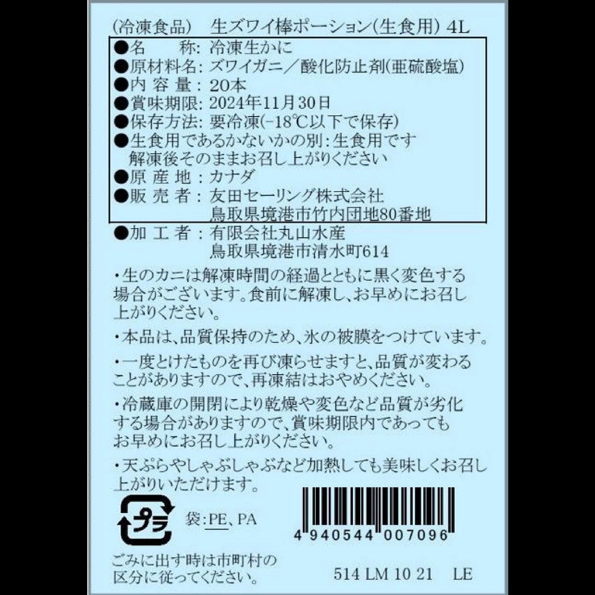 【かに舞】生ズワイ棒ポーション カナダ産 20本入