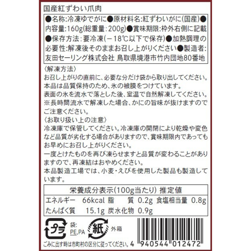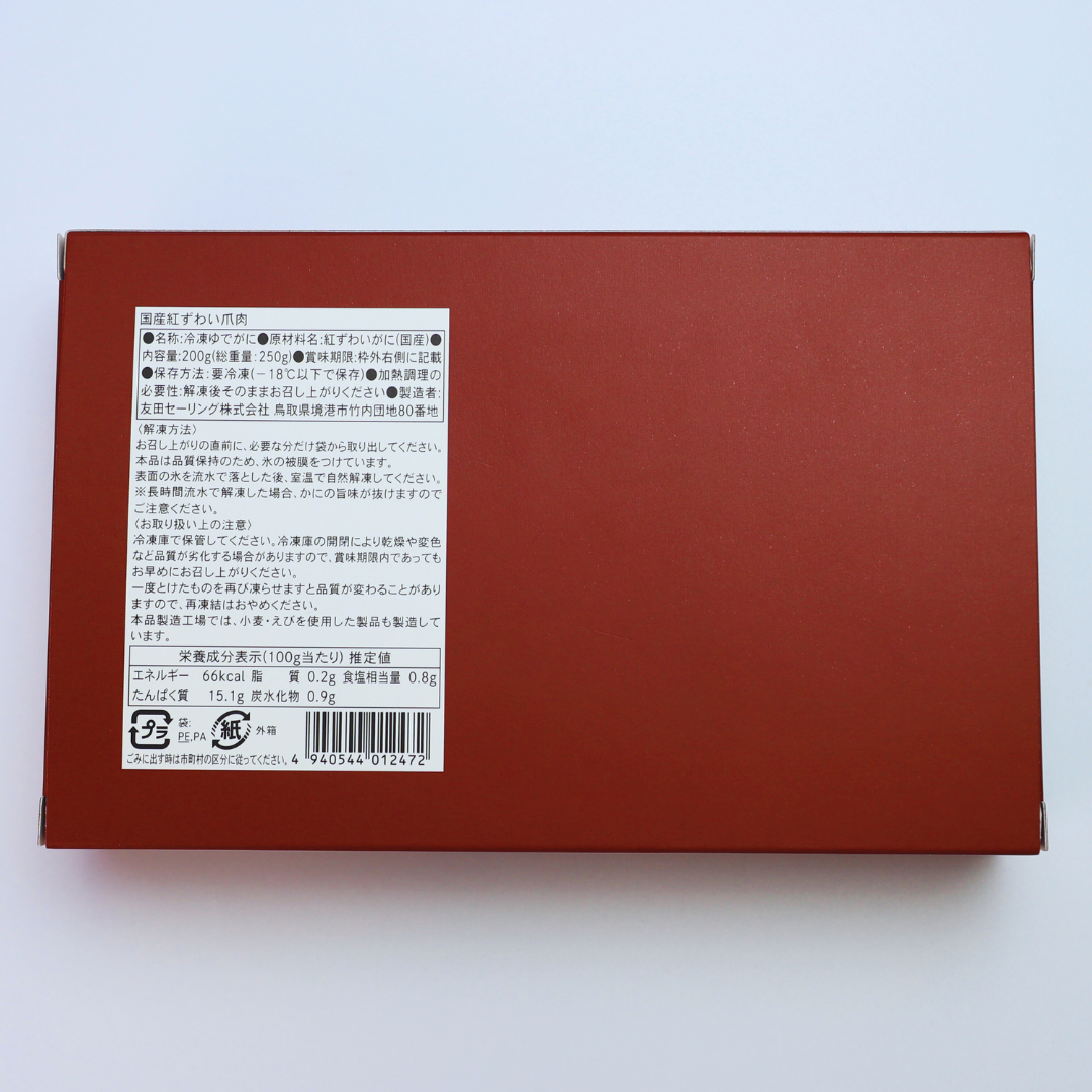 国産紅ずわいがにの大型の爪を厳選、食べやすくむき身に加工しました。