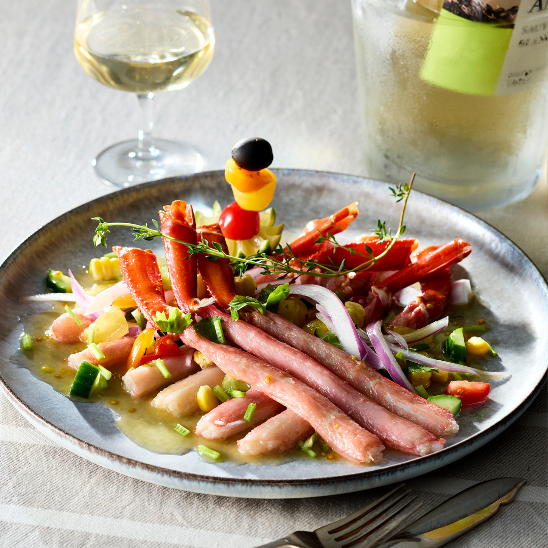 一本ずつ丁寧に殻を剥いて食べやすく仕立てました。お刺身、しゃぶしゃぶ等で紅ずわいがに本来の旨みをご堪能いただけます。