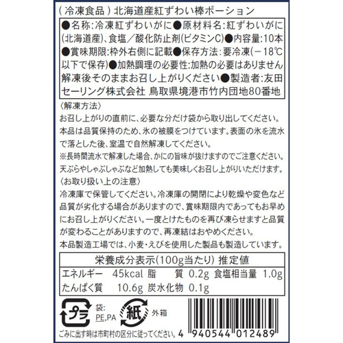 【かに舞】かに舞プレミアム 北海道産紅ずわい 棒ポーション 10本