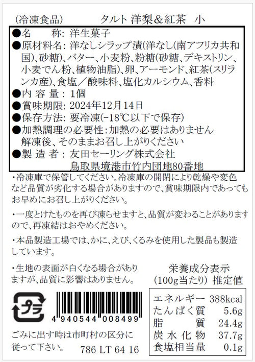 【タルティア】冷凍タルト 洋梨&紅茶 プチサイズ