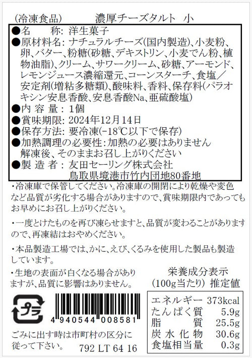 【タルティア】冷凍タルト 濃厚チーズタルト プチサイズ