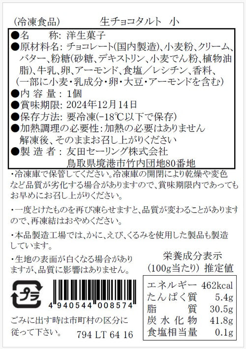 【タルティア】冷凍タルト 生チョコタルト プチサイズ